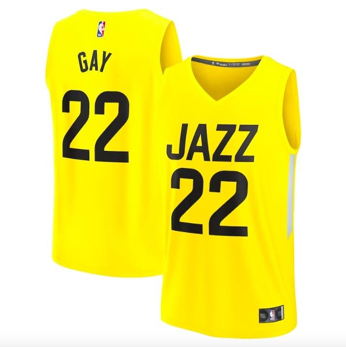 Maillot de basket-ball 2022-23 Utah Jazz #22 Rudy Gay Fast Break Icon Maillot jaune noir 628727 Vêtements de sport et chaussures pour hommes