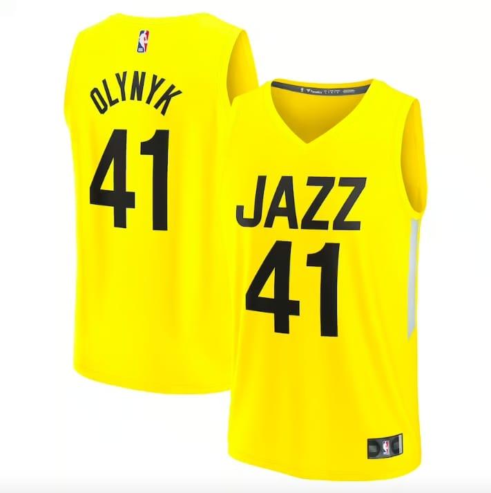 Maillot de basket-ball 2022-23 Utah Jazz #41 Kelly Olynyk Fast Break Icon Maillot jaune noir 628766 Vêtements de sport et chaussures pour hommes