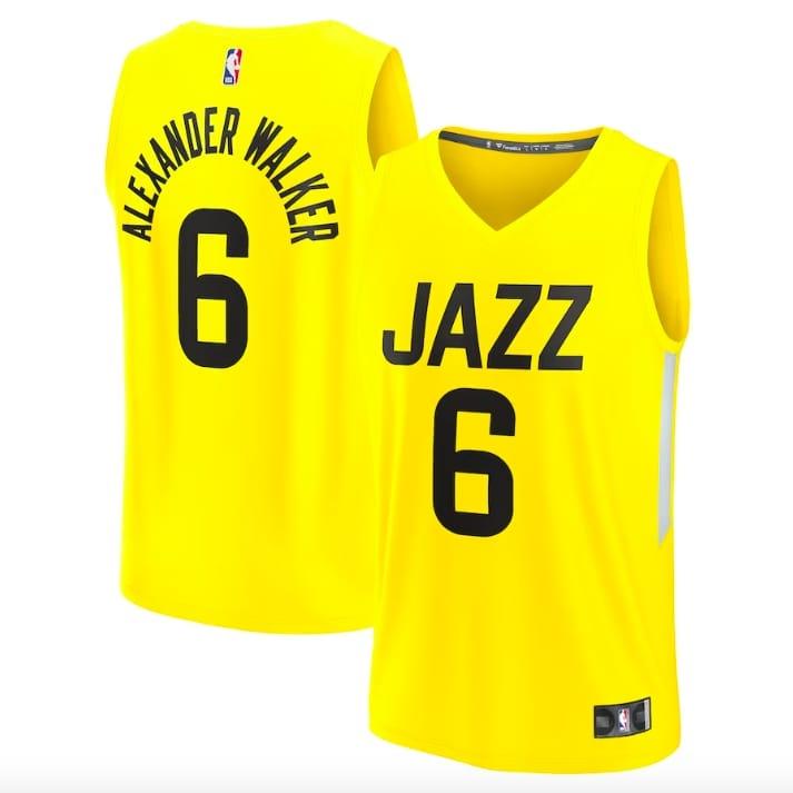Maillot de basket-ball 2022-23 Utah Jazz #6 Nickeil Alexander-Walker Fast Break Icon Maillot jaune multicolore 628753 Vêtements de sport et chaussures pour hommes