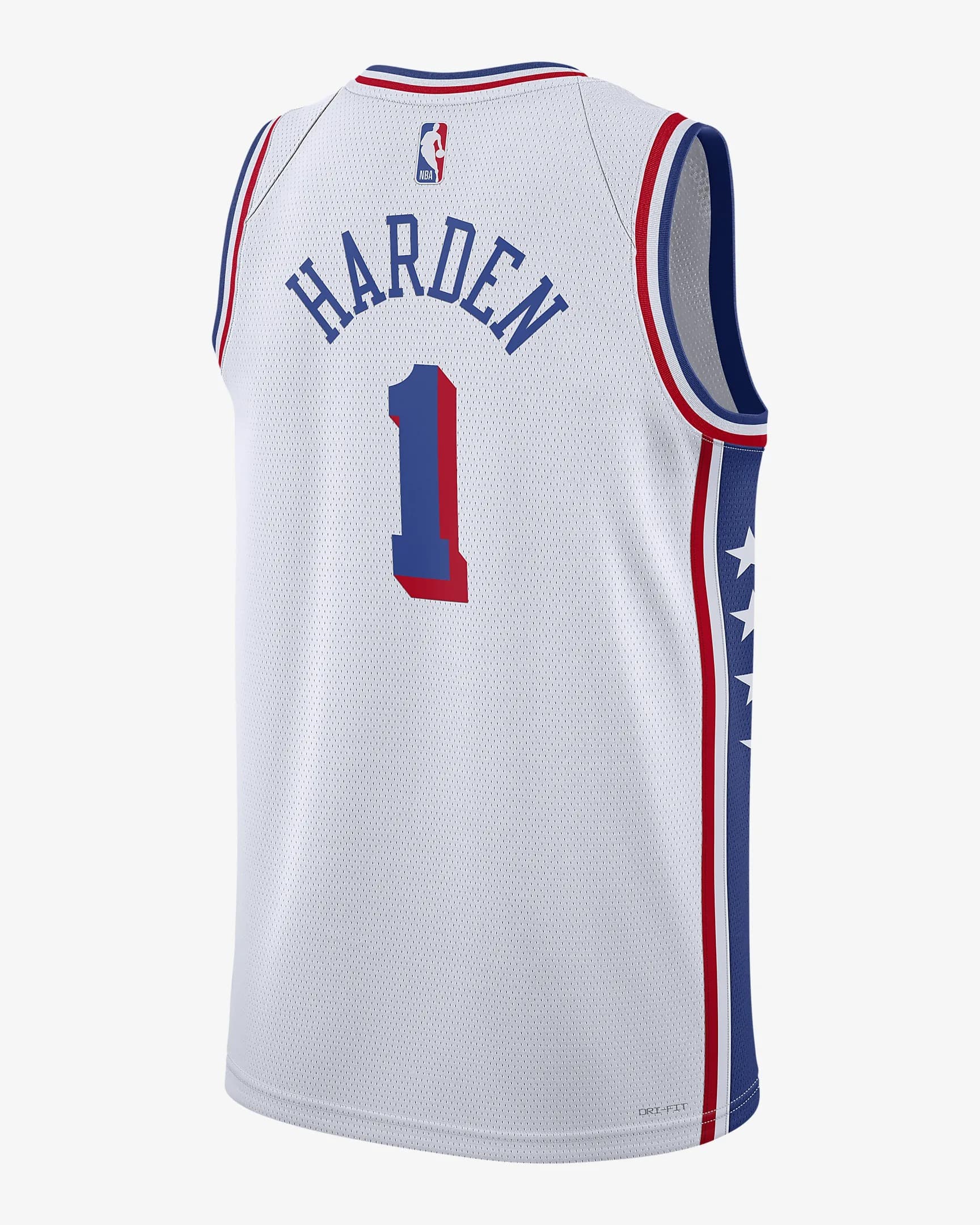 Maillot de basket-ball 2023-24 Philadelphia 76ers James Harden #1 Swingman Association Edition Maillot blanc 695631 Vêtements de sport et chaussures pour hommes