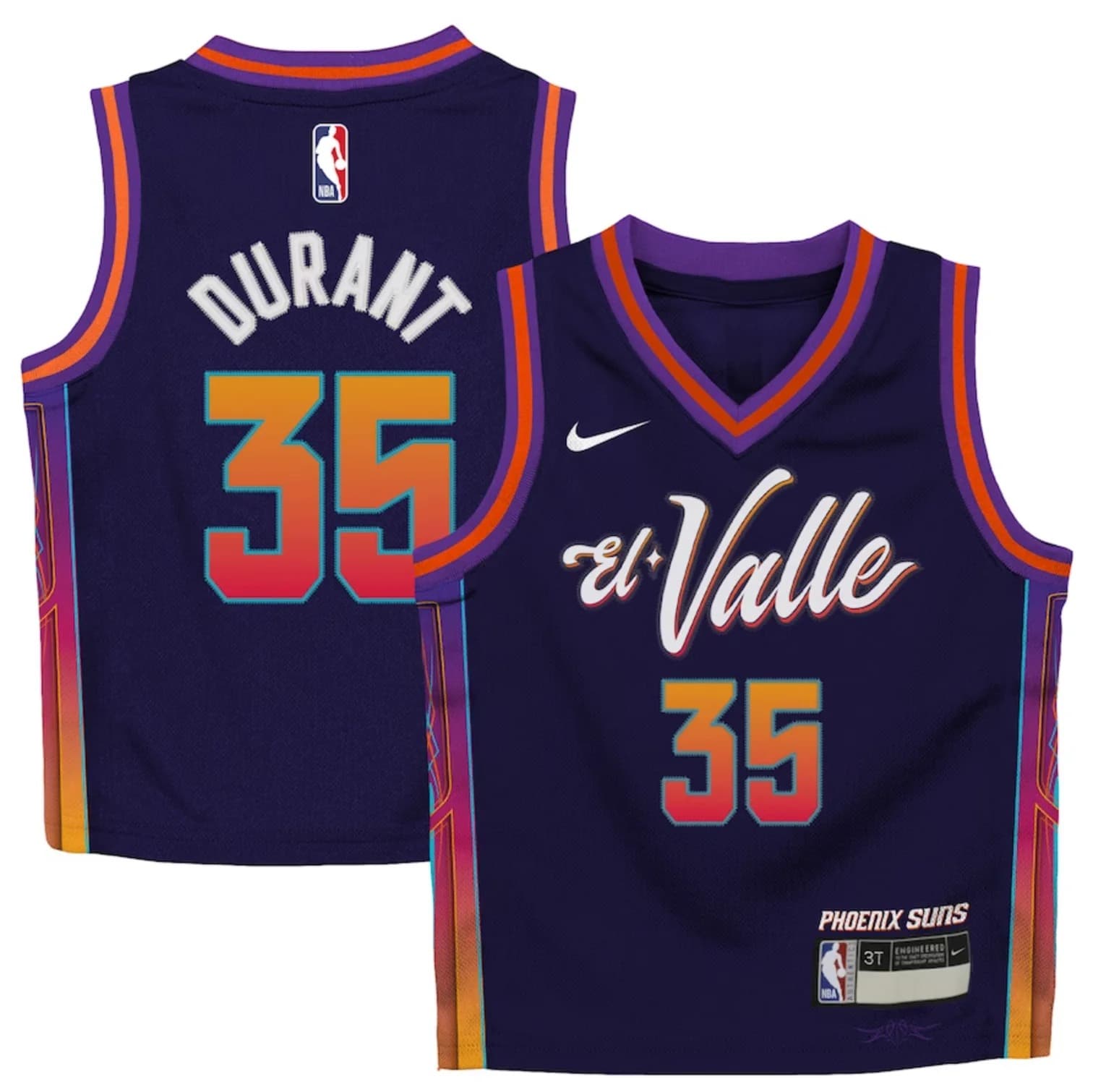 Maillot de basket-ball 2023-24 Phoenix Suns Kevin Durant #35 Boys City Edition Maillot Violet Violet 699569 Vêtements de sport et chaussures pour enfants
