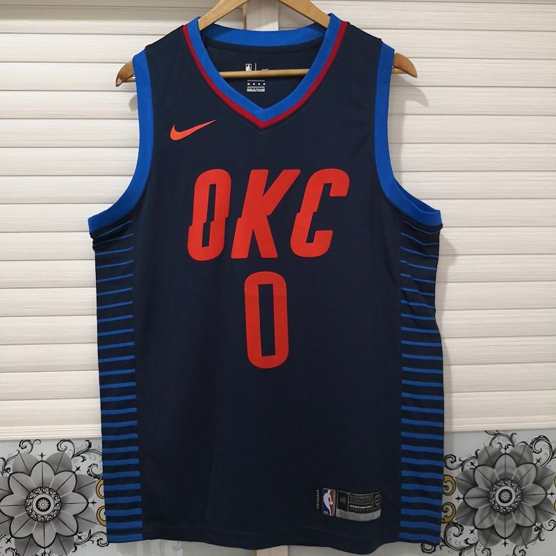Maillot de basket-ball bleu marine Russell Westbrook Oklahoma City Thunder # 0 2017-18 42543 Vêtements de sport et chaussures pour hommes