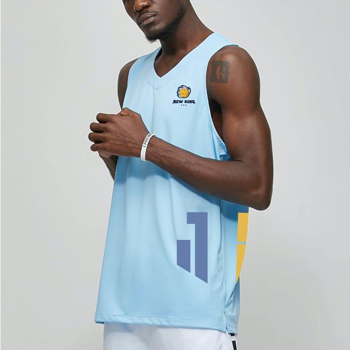 Ehot New King Blue Jersey T-shirt with V -shaped neckline and side slits designed specifically for training. The light blue jersey features a graphic color print with the New King signature and the number 68 on the side. A T-shirt made of lightweight hygroscopic material will be an excellent addition to your wardrobe.