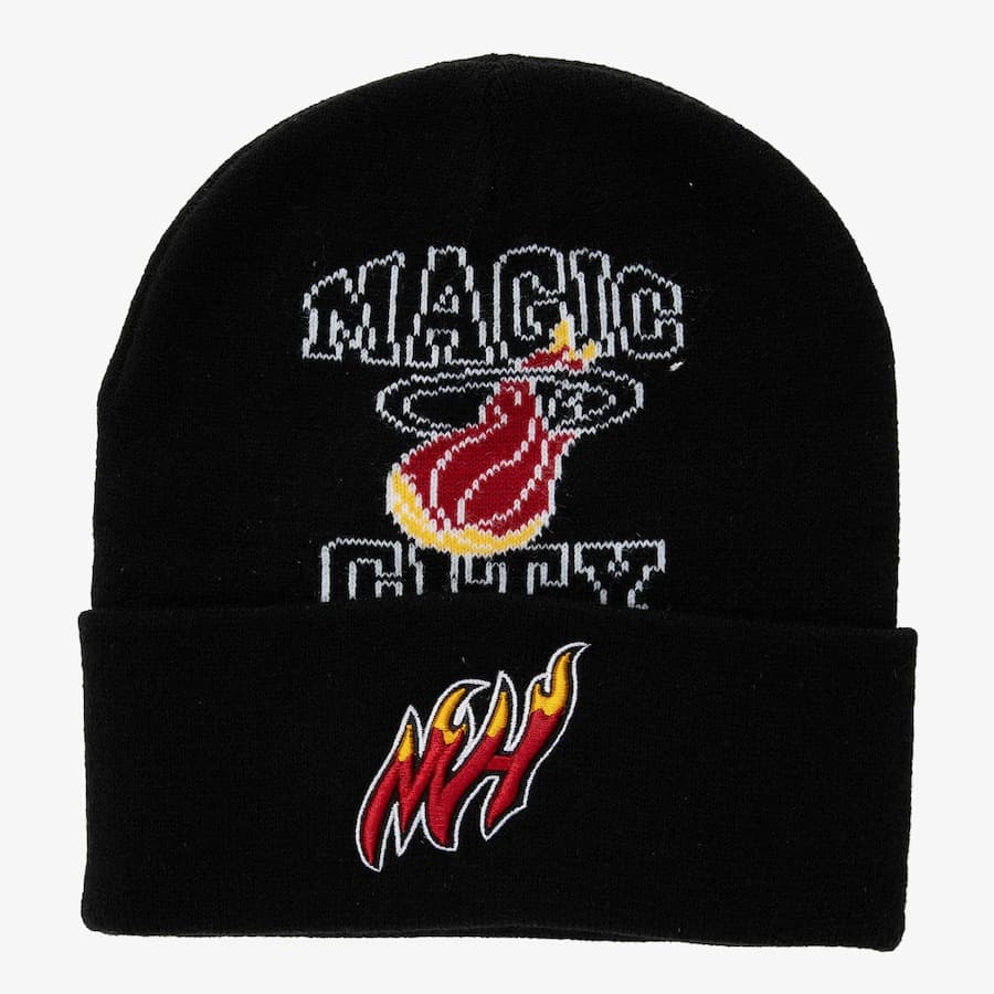 Mitchell & Ness Black Miami Heat Hardwood Classics Team Origins Bonnet en tricot à revers Noir 1593494 Accessoires/Chapeaux de sport