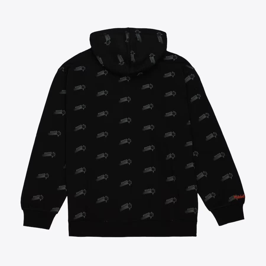 Enjoy the perfect combination of comfort and retro style in this black sweatshirt with orange accents Mitchell & Ness Black Phoenix Suns Allover Print Fleece Pullover Hoodie. It features NBA Suns graphics and colors. The comfortable hood and fleece lining make this hoodie the perfect wardrobe staple for chilly game days. Support your favorite NBA team even in the cold season.