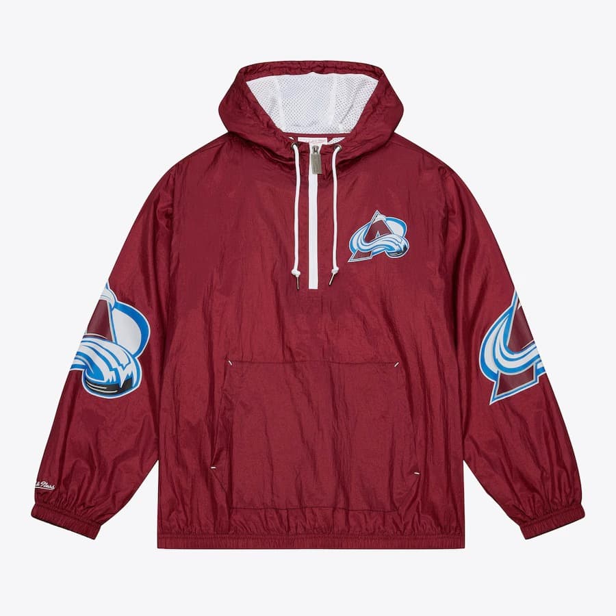 Enjoy the perfect blend of comfort and retro style in this burgundy anorak with blue accents Mitchell & Ness Burgundy Colorado Avalanche Team 2.0 Anorak Quarter-Zip Windbreaker Jacket. It features Avalanche team graphics and colors. Convenient pockets and a hood make this jacket the perfect wardrobe staple for chilly game days.