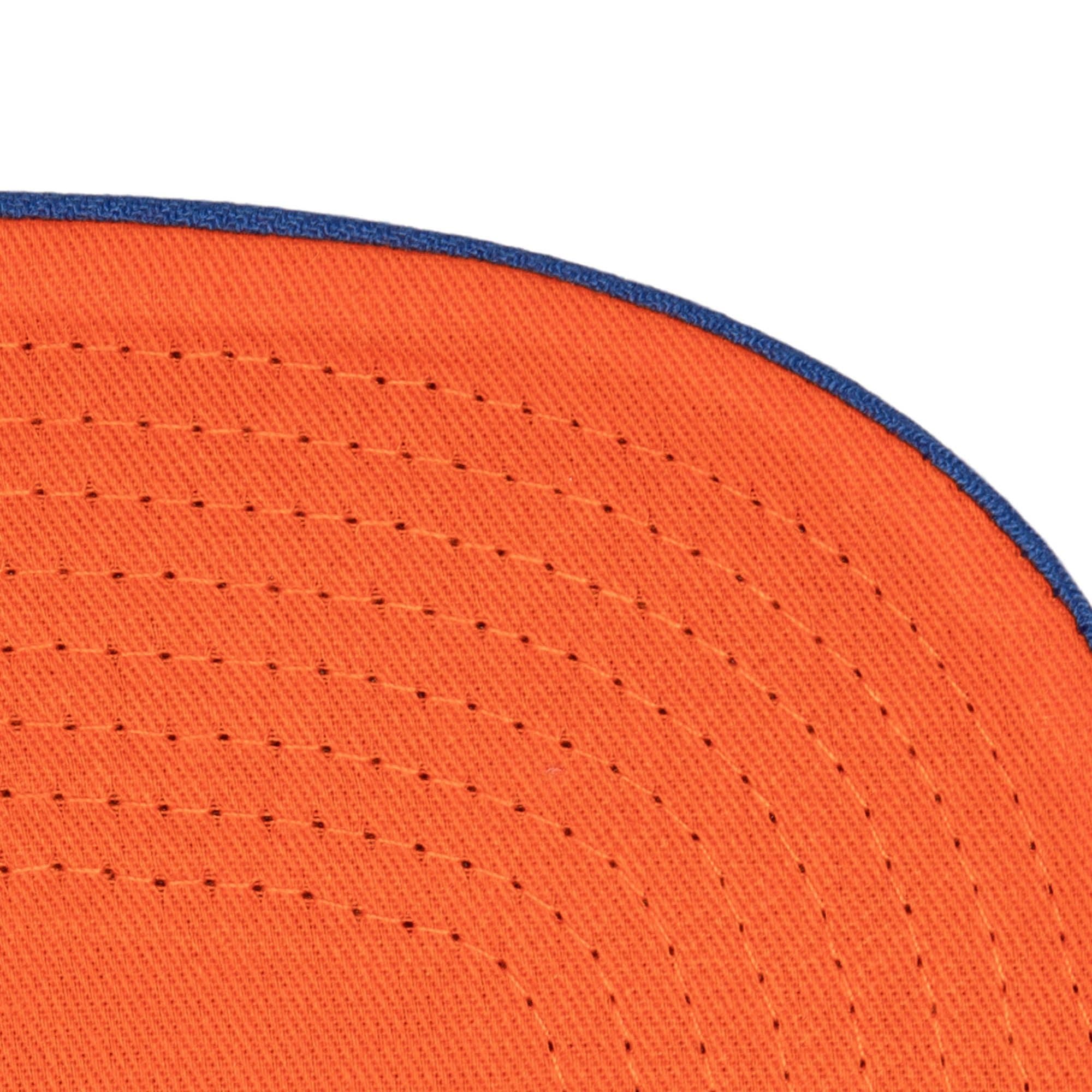 Blue Baseball Cap with Orange Accents Mitchell & Ness Full Frontal Snapback New York KnicksRetro style features a snap closure at the back for adjustment, an embroidered Knicks logo, Mitchell & Ness branding on the back and a straight visor for maximum style. The baseball cap is made of polyester with an orange lower part of the visor.