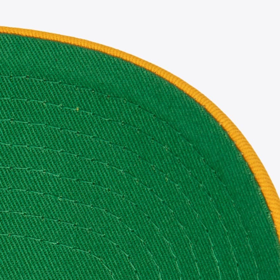 Green Baseball Cap with Yellow Accents Mitchell & Ness Green Seattle Supersonics Hardwood Classics Velor Snapback HatThe retro style features a snap closure at the back for adjustment, an embroidered SuperSonics and Mitchell & Ness brand logo on the back and straight visor for maximum style. The baseball cap is made of premium velor with a gray lower part of the visor.
