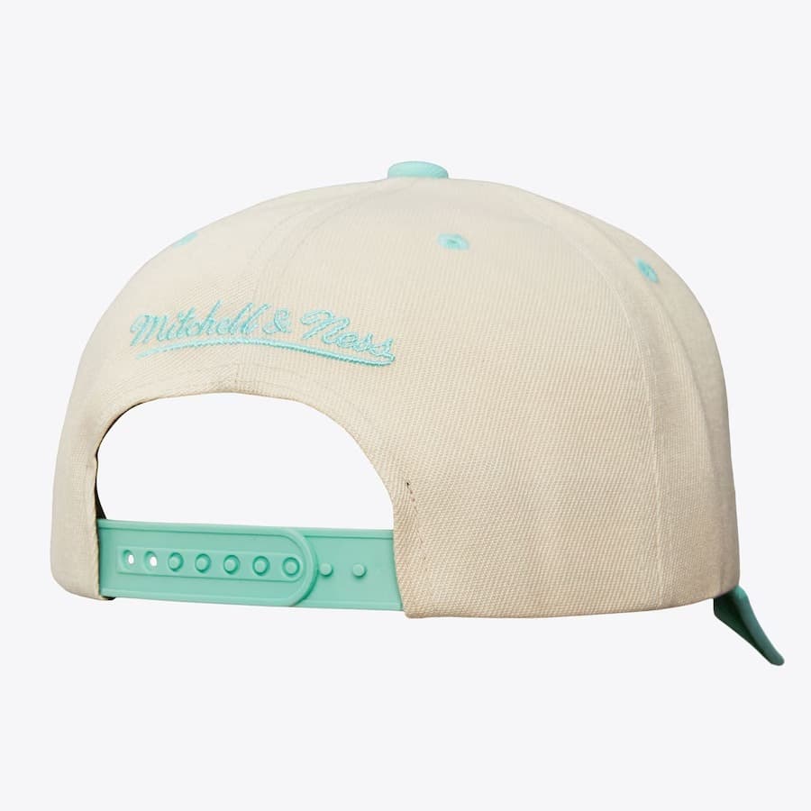 It's NHL time! Cream baseball cap with turquoise accents Mitchell & Ness Cream Seattle Kraken Retro Type Pro Snapback Hatretro -style features a snap closure at the back for adjustment, an embroidered Kraken logo, Mitchell & Ness branding at the back and a curved peak for maximum style. The baseball cap is made of polyester with a green lower part of the visor.