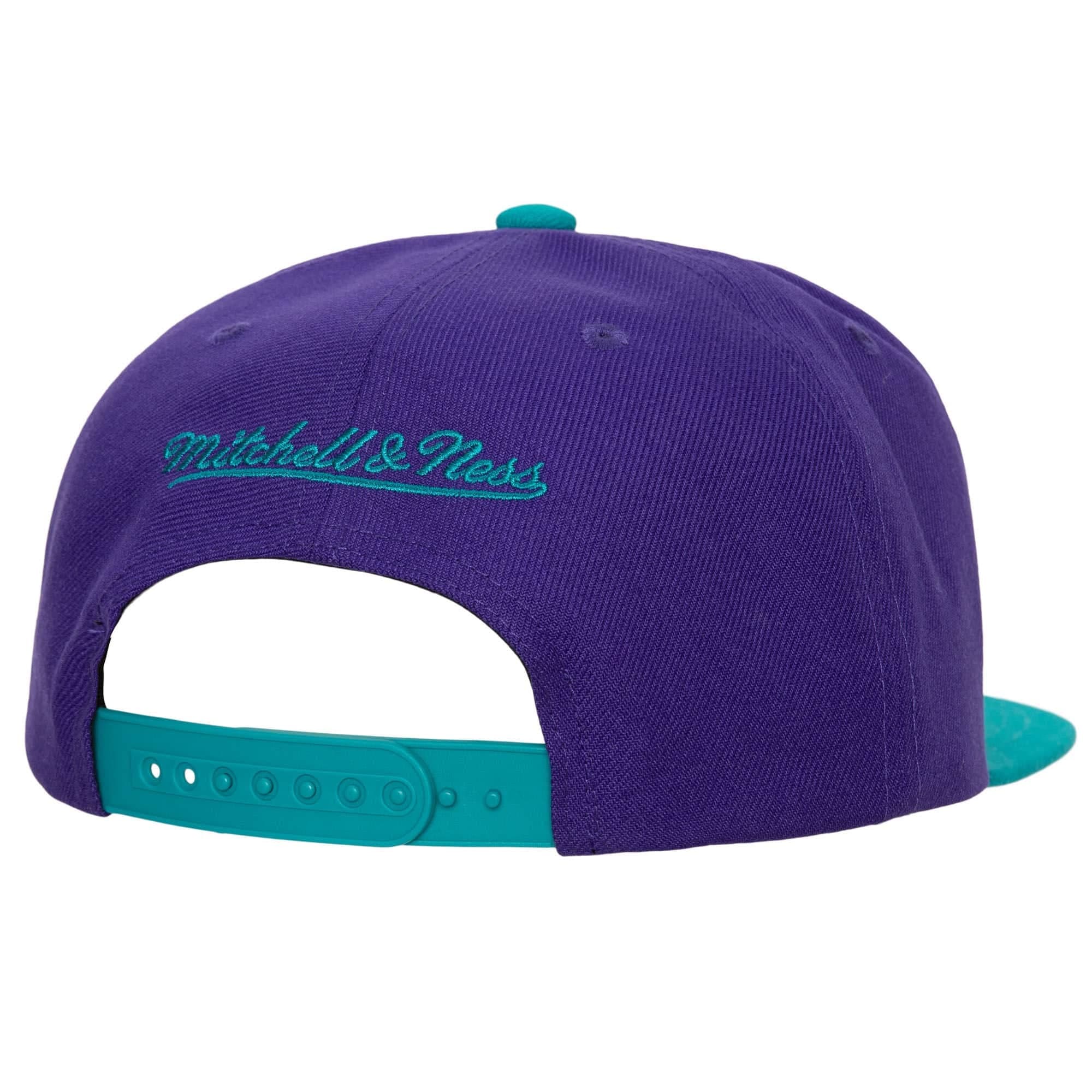 Purple Baseball Cap Mitchell & Ness Crooked Path Snapback HWC Charlotte Hornets Hatretro style has a snap closure at the back for adjustment, embroidered logoHornets team jersey with the iconic Hornet, Mitchell & Ness brand logo on the back and a straight visor for maximum style. The baseball cap is made of 100% polyester with a green lower part of the visor.