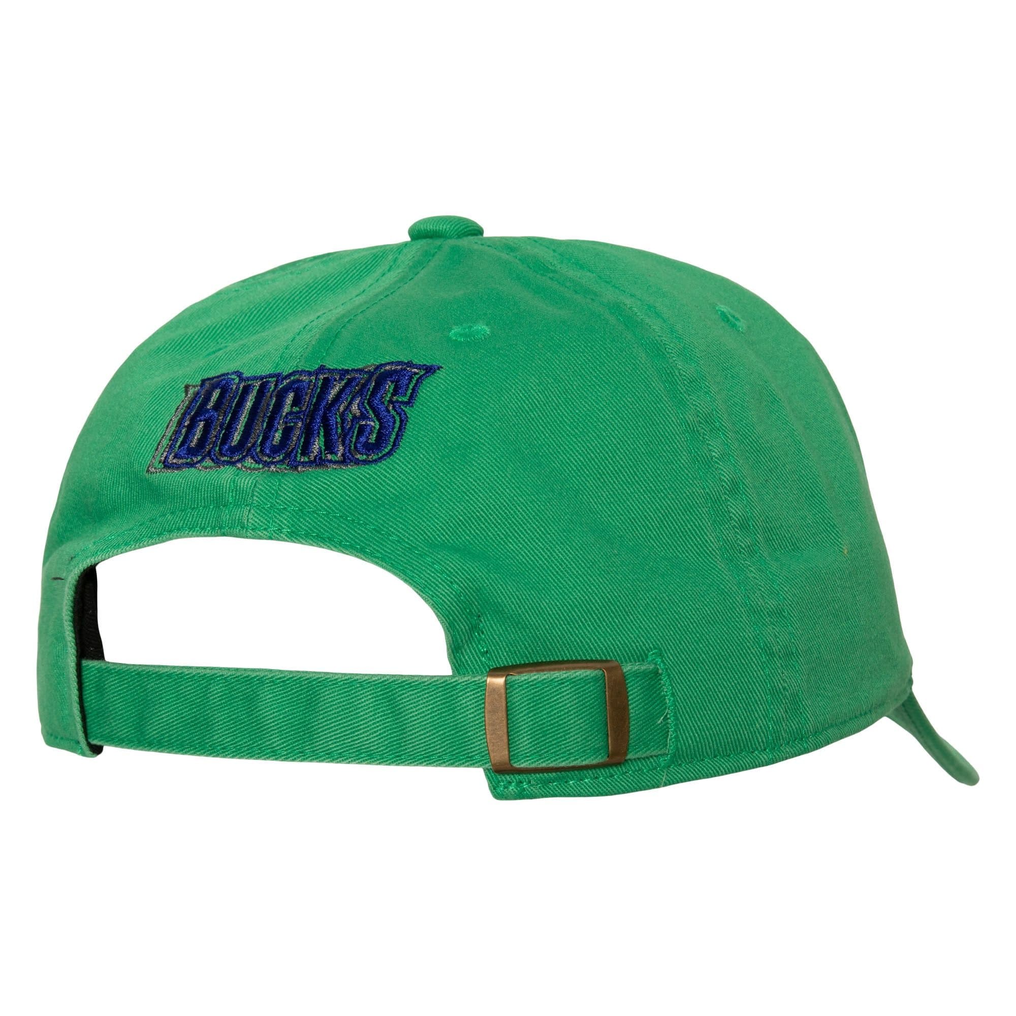 Green Baseball Cap Mitchell & Ness Tapestry Snapback Milwaukee Bucks Hat The retro style features a snap closure at the back for adjustment, an embroidered Bucks team logo, Mitchell & Ness branding on the back and a straight visor for maximum style. The baseball cap is made of polyester and wool with a green lower part of the visor.