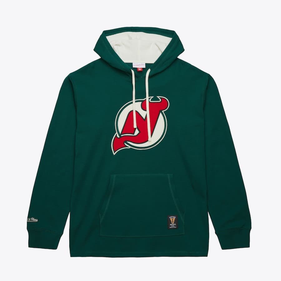Enjoy the perfect blend of comfort and retro style in this lightweight green hoodie Mitchell & Ness Green New Jersey Devils Vintage Logo Thermal Lightweight Pullover Hoodie. It features club graphics and Devils team colors. A convenient front pocket and hood make this hoodie the perfect wardrobe staple for chilly game days.