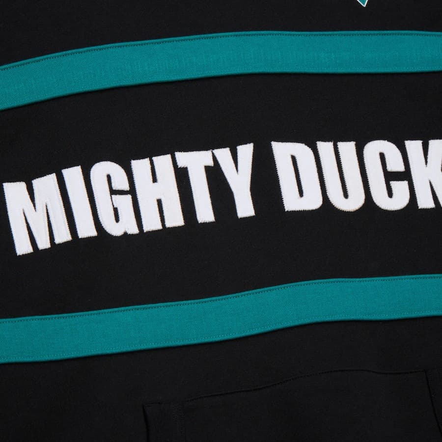 Enjoy the perfect blend of comfort and retro style in this black sweatshirt with turquoise accents Mitchell & Ness Black Anaheim Ducks Vintage Logo Head Coach Fleece Pullover Hoodie . It features club graphics and Ducks team colors. A convenient front pocket and hood make this hoodie the perfect wardrobe staple for chilly game days.