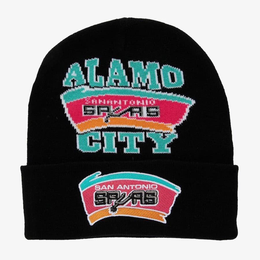 Black Hat with Turquoise Accents Mitchell & Ness Black San Antonio Spurs Hardwood Classics Team Origins Cuffed Knit HatFeaturing an embroidered Spurs logo and a classic look that can be worn all year round, this one will be the freshest addition to your collection. in winter!