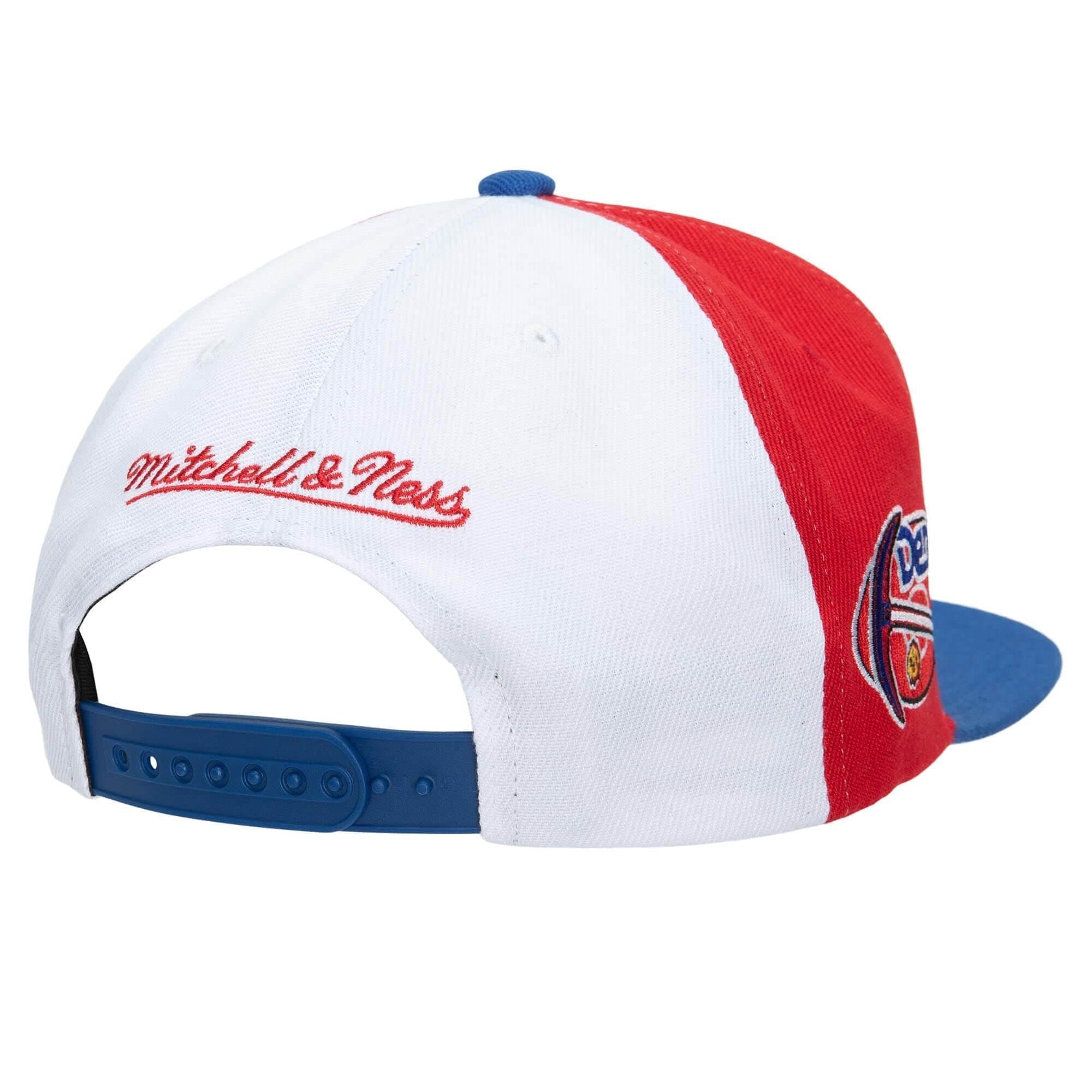 Gray baseball cap with Mitchell & Ness Team Heather 2.0 Snapback Detroit Pistons HatRetro style features a snap closure at the back for adjustment, embroidered Pistons team logo, logo Mitchell brand& Ness back and straight visor for maximum style. The baseball cap is made of polyester and wool with a blue lower part of the visor.