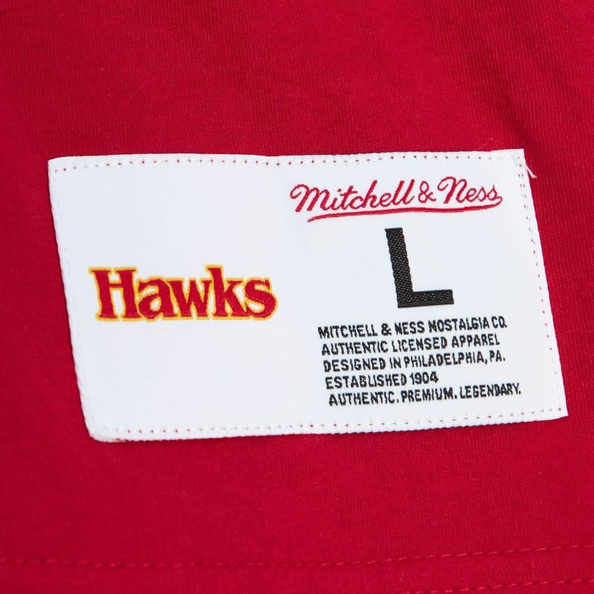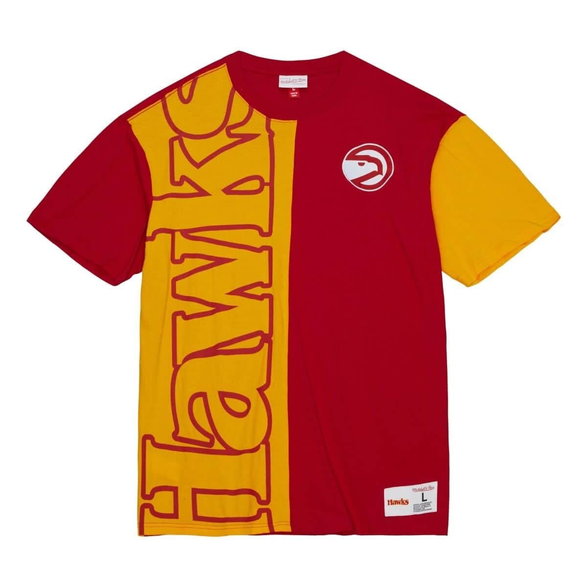 Mitchell & Ness Play By Play 2.0 SS Atlanta Hawks T-shirt Rouge/Jaune 729949 Vêtements et chaussures de sport pour hommes