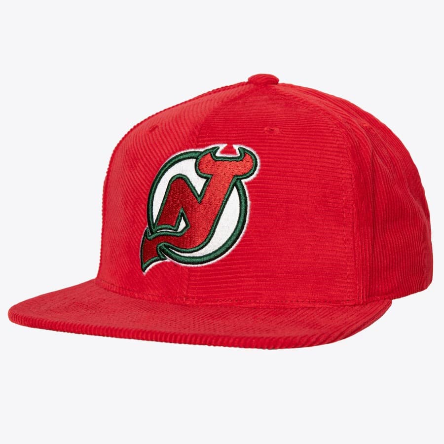 NHL time has come! Red baseball cap with green and white accents Mitchell & Ness Red New Jersey Devils All Directions Vintage Snapback HatRetro style features a snap closure at the back for adjustment, an embroidered Devils team logo, Mitchell & Ness branding on the back and a straight peak for maximum style. The baseball cap is made of cotton with a green lower part of the visor.