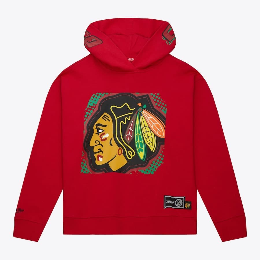 Enjoy the perfect blend of comfort and retro style in this women's red sweatshirt with colorful accents Mitchell & Ness Women's Red Chicago Blackhawks Big Face 7.0 Pullover Sweatshirt . It features Blackhawks team graphics. A convenient front pocket and hood make this hoodie the perfect wardrobe staple for chilly game days.