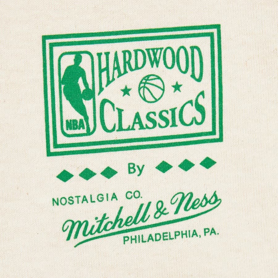 Every city you encounter has something special. The people you meet, the accents you hear, the places you see all add up to the unique DNA of what makes your hometown special. The NBA's latest "Crown Jewels" collection, featuring premium headwear and jerseys, features throwback graphics and designs inspired by some of the most iconic locations on the map. Rooted in sport, perpetuated by culture. T-shirt Mitchell & Ness Natural Boston Celtics Hardwood Classics Crown Jewels T-Shirtmade of high quality cotton in beige with green accents.