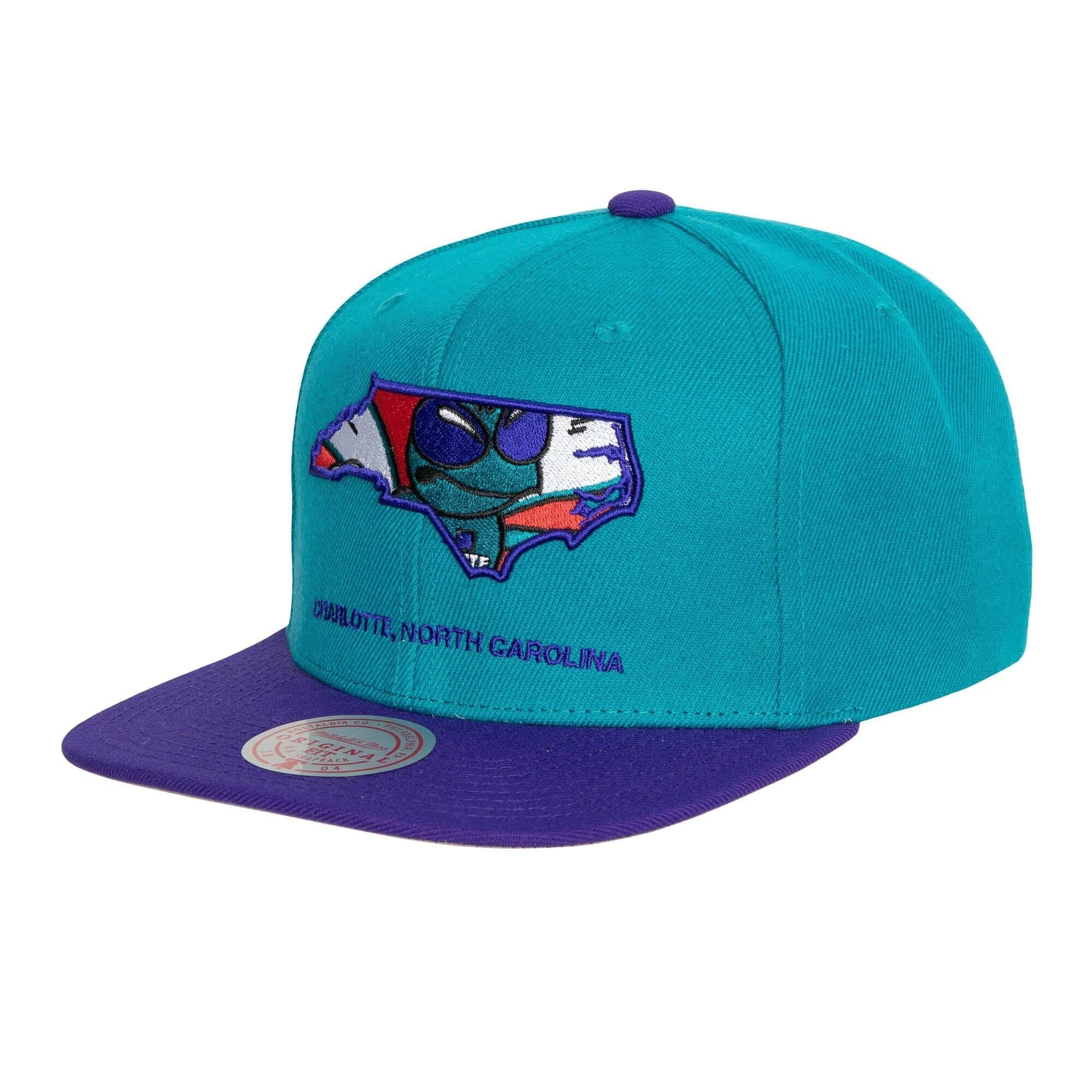 Purple Baseball Cap Mitchell & Ness Sharktooth Snapback HWC Charlotte Hornets Hathas a retro style a snap closure at the back for adjustment, an embroidered Hornets logo with the famous Hornets, a Mitchell & Ness brand logo at the back and a straight visor for maximum style. The baseball cap is made of 100% polyester with a green lower part of the visor.