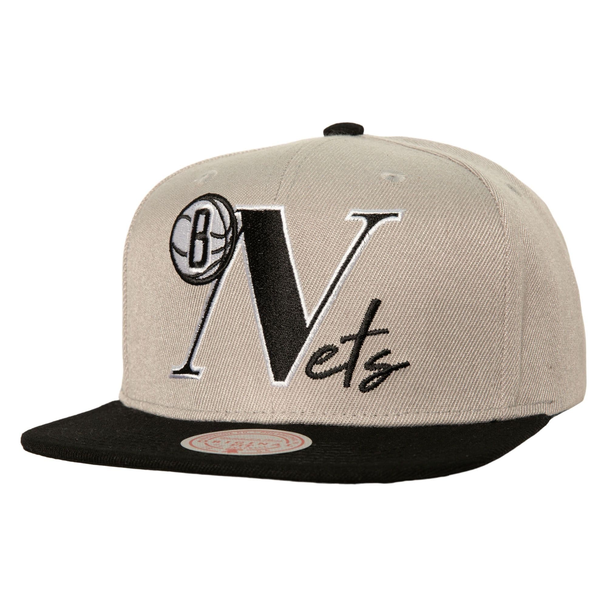 Beige Baseball Cap Mitchell & Ness Top Letter Snapback Brooklyn Nets Hathas a retro style features a snap closure at the rear for adjustment, an embroidered Brooklyn Nets and Mitchell & Ness brand logo at the back, and a straight visor for maximum style. The baseball cap is made of 100% polyester with a black lower part of the visor.