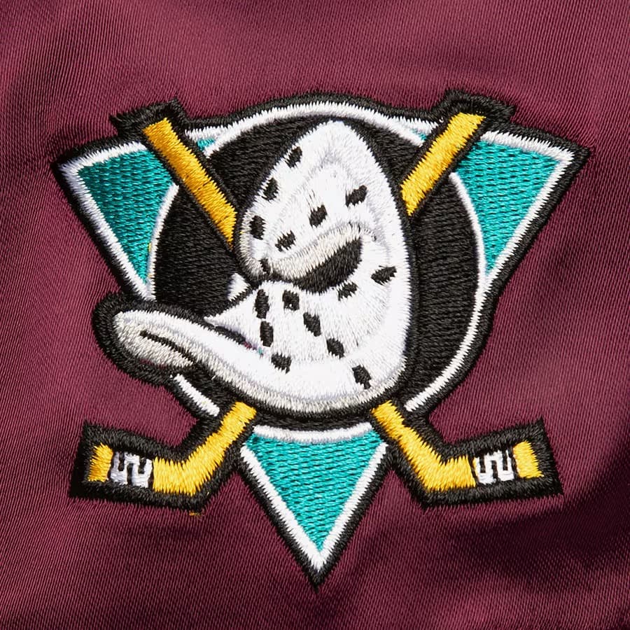 This purple baseball cap has a straight peak and a green bottom Mitchell & Ness Purple Anaheim Ducks Vintage Hockey Satin Dreams OG Snapback Hat will become a staple in any hat collection. Combining statement details and timeless style, the cap features a high-mounted crown and structured panels for a classic snapback shape. The intricate embroidery is a tribute to your favorite club, perfect for game day or just to support the Ducks.