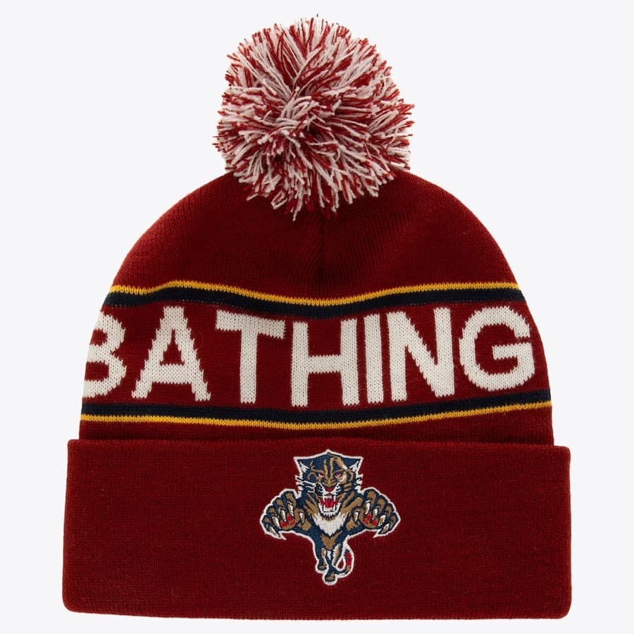 Mitchell & Ness x Bape Red Florida Panthers Bonnet à pompon en tricot à revers Rouge 1112187 Accessoires/Chapeaux de sport