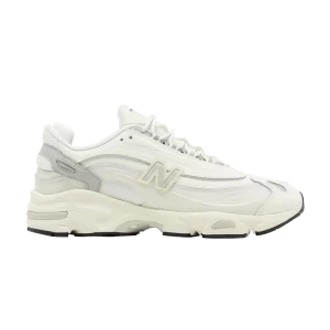 The Aimé Leon Dore x New Balance 1000 "Sea Salt Concrete," a three-piece collaboration, features white and pale gray tones that combine perforated leather with breathable mesh lining. Aimé Leon Dore sports branding is placed on the lateral forefoot, while dual branding adorns the tongue and toe. White ABZORB midsole provides lightweight cushioning.