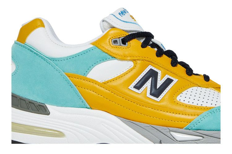 The Sneakersnstuff x New Balance 991 Made in England 'Secret Colorway' is inspired by the Swedish retailer's first collaboration with New Balance, which featured two 577 colorways designed in 2005 by SNS founders Peter and Eric . Although the latter were eventually redesigned, the original first batch was released by SNS as the "Secret Colorway". This model is recreated here. Featuring a White leather upper with contrasting Mint Green and Mustard Yellow suede and leather overlays. The vibrant hues are complemented by black laces and a matching black "N" logo.