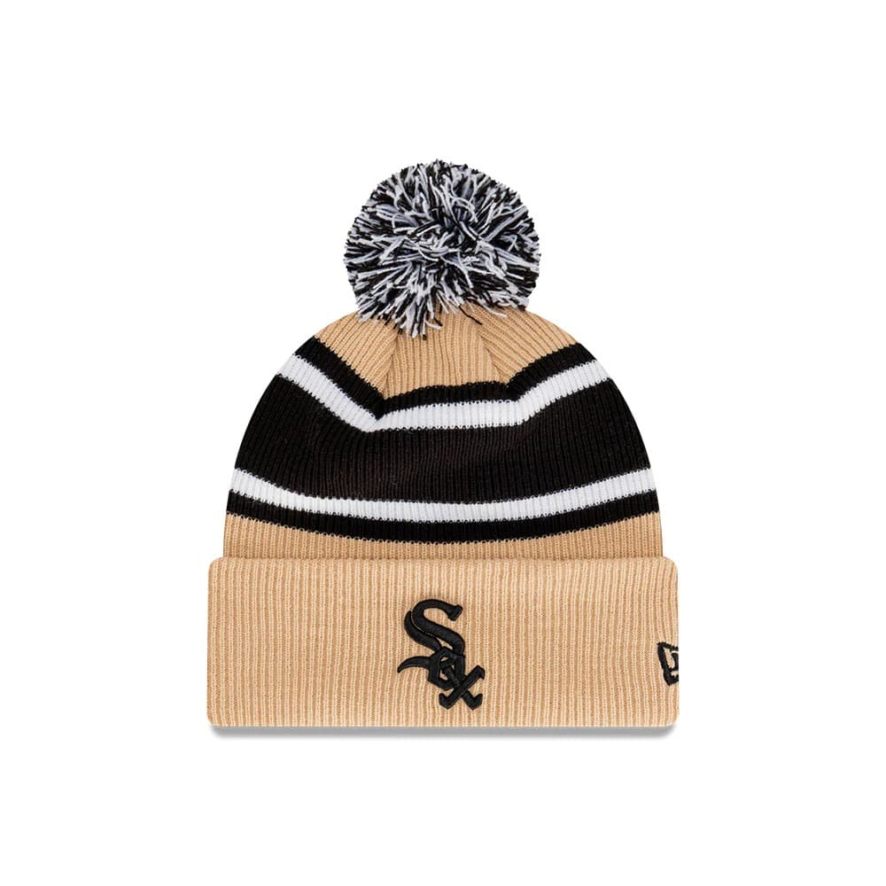 Featuring an embroidered Chicago logo, team-colored stripes and a classic look that can be worn year-round, the Black and Beige Beanie New Era Chicago White Sox Strip Pom Knit MLB Beanie will be the most a fresh addition to your collection this winter!