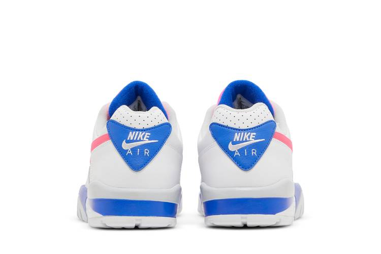 The Nike Air Cross Trainer 3 Low "Hyper Pink Racer Blue" features a Pink Swoosh on the lateral side of the upper, constructed from White leather with perforations for enhanced breathability. Nike Air branding is embroidered on the stitched leather heel patch in Racer Blue. The vibrant hue is repeated on the foam midsole, which features Air cushioning for a smooth ride.