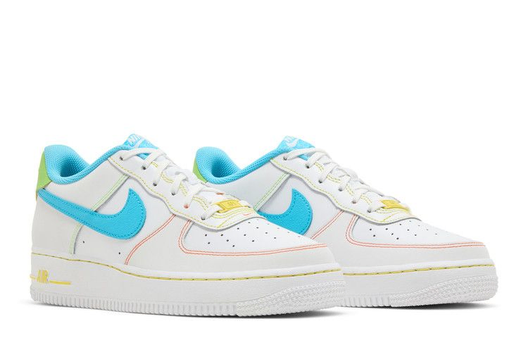 Nike Air Force 1 Low GS 'Rainbow Stitch' Blanc/Vert Action/Jaune Opti/Bleu Baltique FJ4614 100 Vêtements de sport et chaussures pour enfants