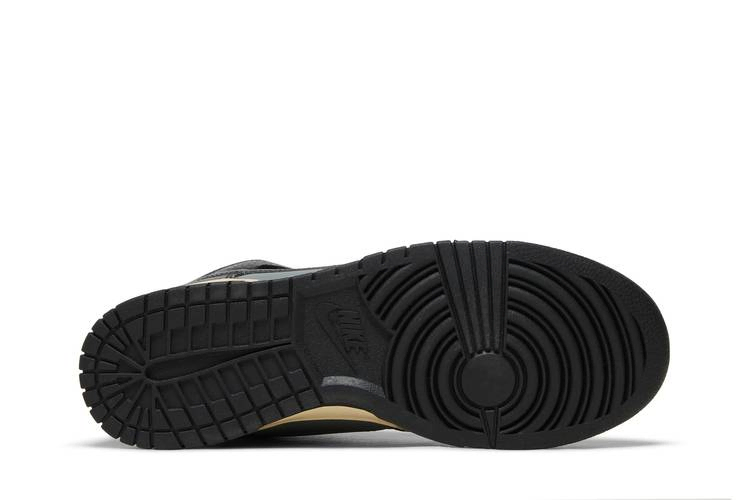 Nike Dunk High "50 Years of Hip-Hop" is an anniversary collection dedicated to the musical genre that was born in 1973 in the Bronx. The retro shoe features a two-tone faded leather, Wolf Gray base with contrasting Black overlays and a speckled Swoosh. In addition to the Nike tongue that reads "50 Years of Hip-Hop," musical elements include a platinum microphone keychain and a Nike sock logo inspired by Parental Advisory. The upper part of the sneakers is located on a traditional sole, which combines yellow sidewalls and a black rubber outsole.