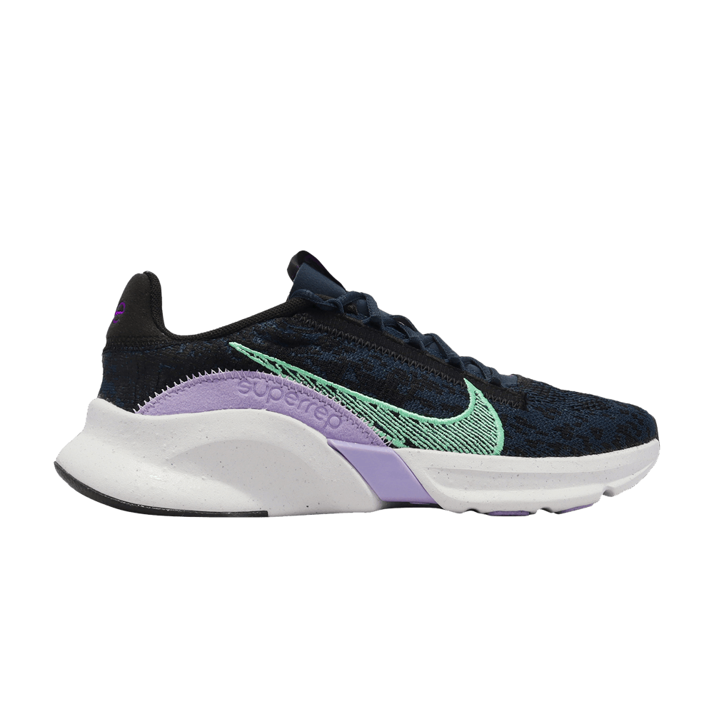 Nike Wmns SuperRep Go 3 Flyknit Next Nature 'Armoury Navy Green Glow 'Noir/Gun Navy/Violet vif/Vert Glow DH3393 002 Vêtements de sport et chaussures pour femmes