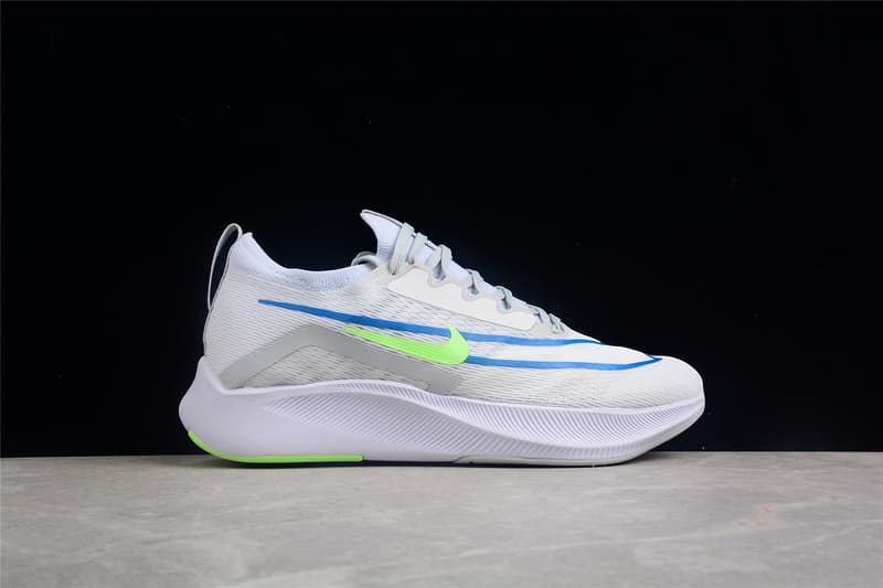 Nike Zoom Fly 4 Blanc Imperial Bleu Lime Glow CT2392 100 Vêtements et chaussures de sport pour hommes