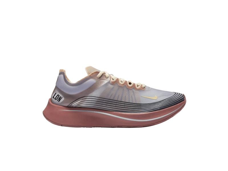 The Nike Zoom Fly SP London is built for the toughest tempo runs with a clear upper and gold Swoosh, with a design that keeps you running fast. reacting, turning the pressure of each step into energy for the next. Constructed from a near-seamless, one-piece Flymesh material, these sneakers are highly breathable to help keep you cool, while ultra-lightweight Flywire cables hug your foot. Underfoot, a full-length nylon plate with carbon inserts in the midsole propels you forward with every step, while Lunarlon cushioning combines soft and firm foam for a balance of cushioning, stability and responsiveness.