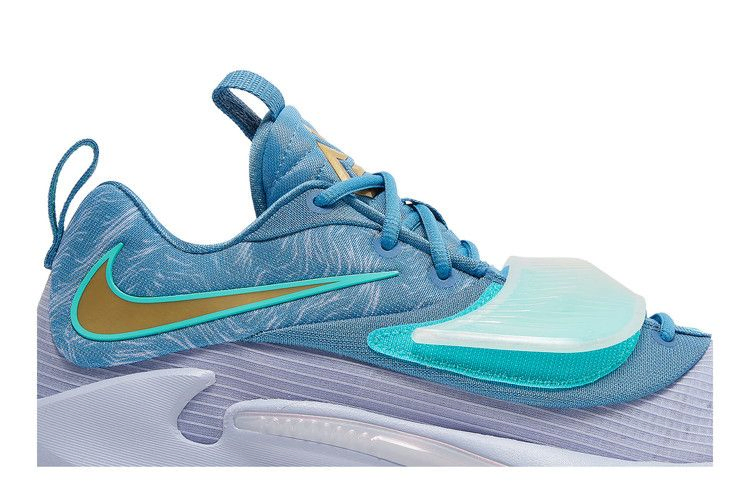 The Nike Zoom Freak 3 "Freezing Time" updates Giannis Antetokounmpo's third signature style with cool, icy tones. Traditional laces and a translucent midfoot strap secure the upper, crafted from lightweight textiles in varying shades of blue. Metallic gold accents adorn the sneaker's signature elements, including the rear Swoosh and Giannis' personal logo on the right tongue. The lightweight Phylon sole is complemented by double Zoom Air units in the toe box and a TPU stabilizing element built into the side wall.