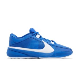Become the owner of a bright style in the Nike Zoom Freak 5 TB Game Royal sneakers. These sneakers feature a light blue upper complemented by white accents for a great look. Get ready to experience superior comfort and responsive performance with advanced Zoom Air cushioning technology. Ideal for both casual walks and intense gaming, these sneakers seamlessly combine style and functionality, making them a versatile addition to any collection.