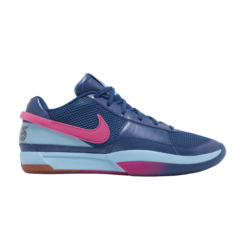 Nike Ja 1 "NY vs. NY" is a tribute to the annual basketball tournament featuring the best high school players in New York City. The energy of the city is reflected in the vibrant colors of Ja Morant's signature debut, featuring a Court Blue mesh upper and Hyper Pink Swoosh outline. Jah's personal logo is featured on the tongue, while the lateral heel features NY vs. NY. The low-top sits atop a light blue Phylon midsole with Zoom Air cushioning in the toe box. The translucent rubber sole has a gradient combination of blue, pink and orange.