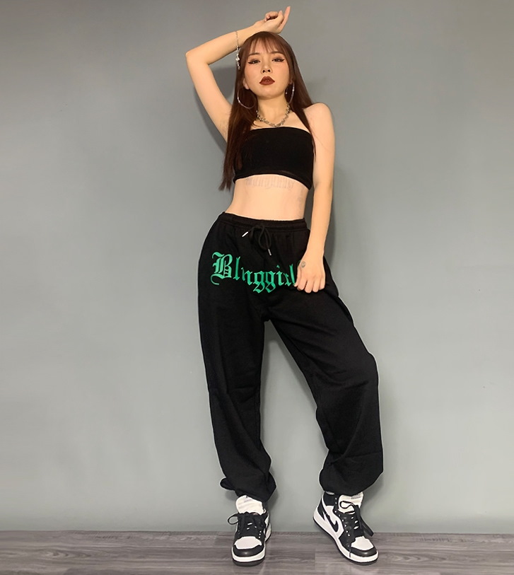 Pantalons de survêtement 2020 Blinggirls Style hip-hop pantalons de survêtement gris/noir multicolore KK09760 Vêtements de sport et chaussures pour femmes