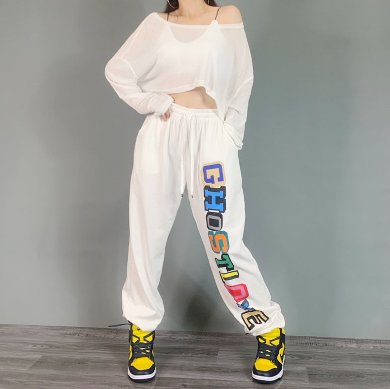 Pantalons de survêtement 2021 Ghostlove Style hip-hop pantalons de survêtement blanc blanc 027892 Vêtements de sport et chaussures pour femmes