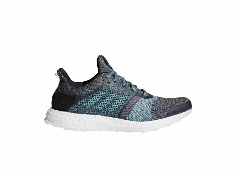 The Parley x adidas UltraBoost ST sneakers are designed with environmental friendliness and sustainability in mind. Constructed using Parley Ocean Plastic yarns from recycled beach and coastal waste, these "Carbon" sneakers adapt to natural movement with a breathable Primeknit upper and supportive Fitcounter heel. Underfoot, these stable sneakers feature a responsive boost midsole with a Blue Spirit stabilizing medial unit and a Stretchweb rubber outsole.