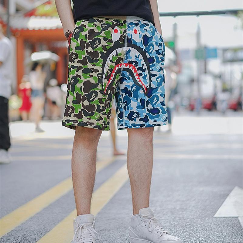 Short de sport BAPE ABC Split Shark Shorts Vert Bleu 35389 Vêtements et chaussures de sport pour hommes