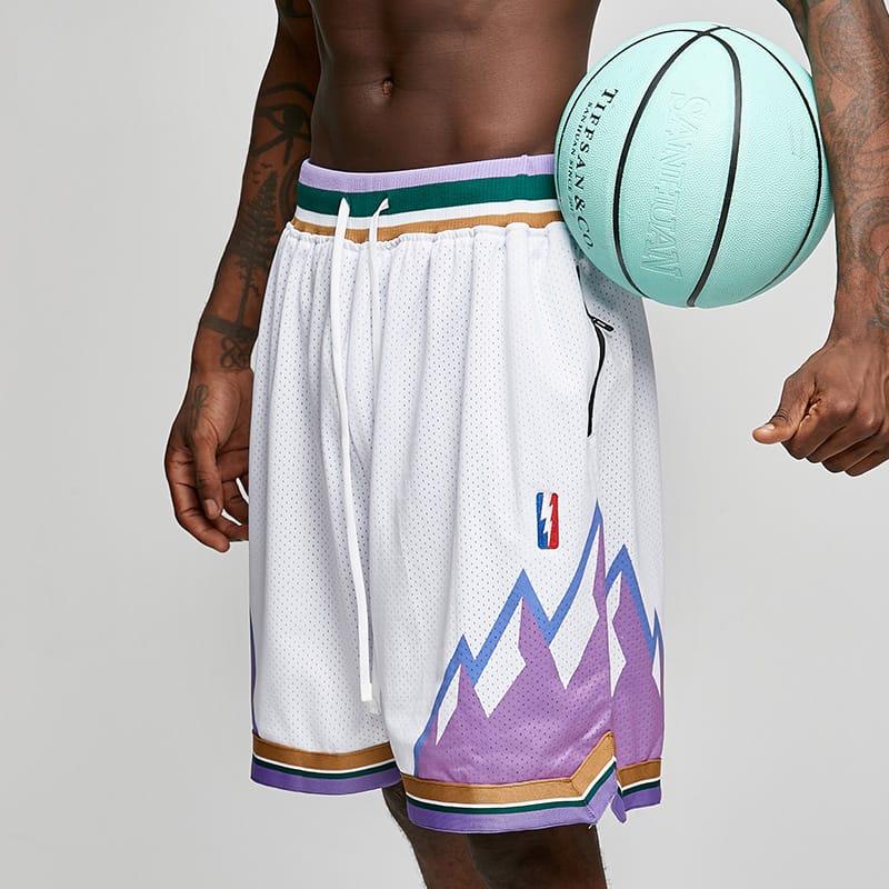 Ehot Street Sports White Shorts sports made made of white mesh fabric with a purple print at the bottom and slits on the sides. The material has excellent stretch and allows air to pass freely. A wide knitted belt with a drawcord ensures a comfortable fit.