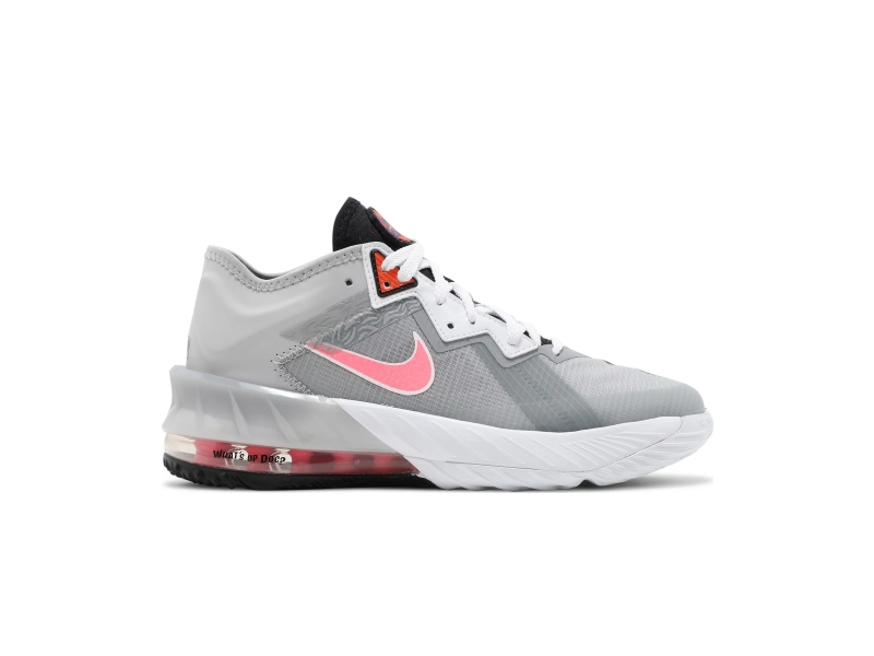 Offering in youth sizing, the Space Jam x Nike LeBron 18 Low GS "Bugs x Marvin" pays tribute to the enemies turned teammates in LeBron James' "Space Jam: A New Legacy." . In addition to the gray and black colorways on the textile upper, the shoe features unique branding inspired by Bugs Bunny and Marvin the Martian on the left and right sides of the sneaker. Each hero is featured on the toe box, while their signature phrases are written on the medial side of the Max Air heel: "What's Up Doc?" on the right and "This Makes Me Very Angry" on the left. The tongue features a molded Tune Squad logo.