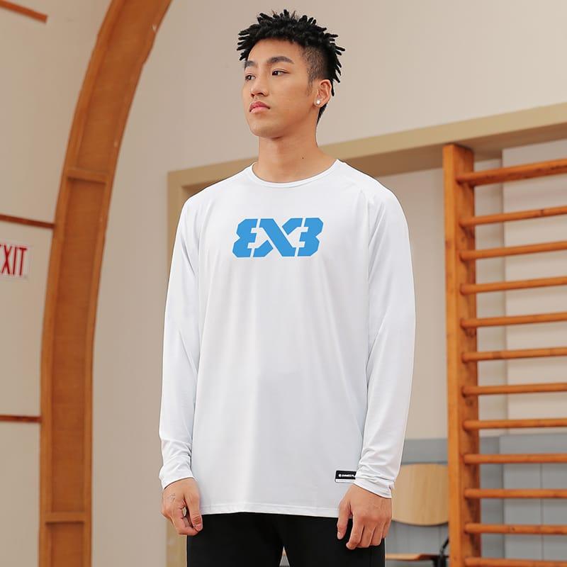 Ehot 3X3 League White Longsleeve- Blue Longsleeve white with a round neck and a comfortable loose fit will fit perfectly into your look. Its front part is complemented by a large light blue FIBA 3X3 tournament logo. This long sleeve with slits on the sides made of ergonomic lightweight material is optimal for training.