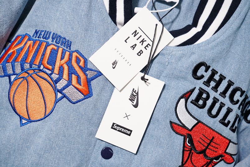 Veste d'échauffement des équipes Supreme x Nike x NBA, blouson aviateur en jean 22946 Vêtements et chaussures de sport pour hommes/Vêtements d'extérieur de sport pour hommes